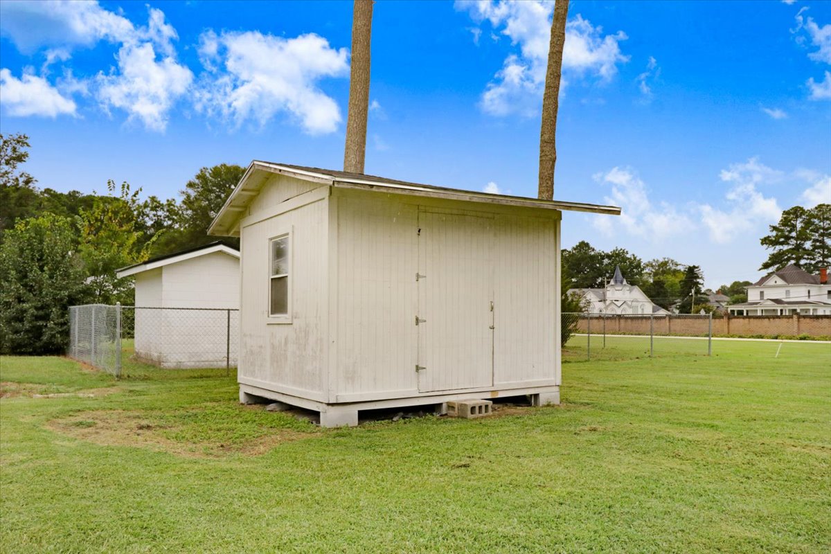 Exterior Features Covered Porch, Fenced Yard, Storage Shed